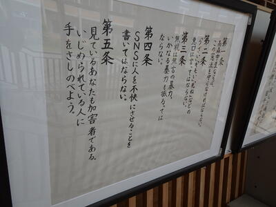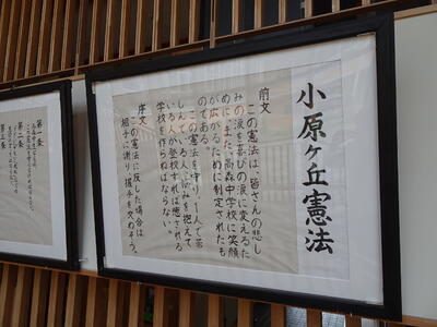 2008年度、第44期生徒会が掲げた公約「いじめのない学校」を具現するために、生徒会役員を中心に検討を重ね、生徒会総会での議決を経て「小原ヶ丘憲法」が制定された。