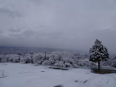 3学期初日も雪景色が広がっていましたが、この日も、まるで冬に逆戻りしたような雪景色が広がっていました。