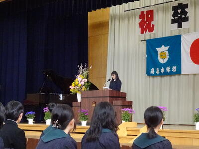 卒業生からの答辞を述べた前生徒会長のIさんは、次のようなことばを在校生に贈りました。