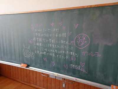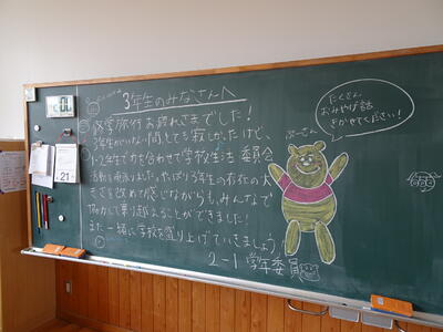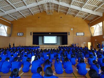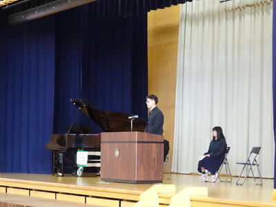 1、2年生のみなさん、皆さんが中学校生活を終えるとき、この3年間が本当に楽しかったと思えるよう、一瞬一瞬を大切に、思い出に変わっていく日々の学校生活を一生懸命送ってください。」