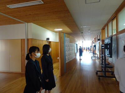 公益社団法人下伊那教育会主催の「郡総合展覧会」が、飯田駅前のムトスぷらざ(旧ピアゴ飯田店店舗)と各小中学校で開催されます。(期間:11月8日(金)~18日(月)本校では、ムトスぷらざでの展示より一足早く、校内展示が始まっています。生徒が制作したすてきな作品が、「芸術の秋」の雰囲気を校内に漂わせてくれています。