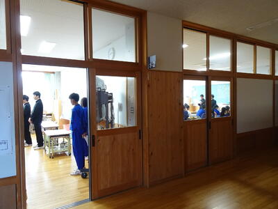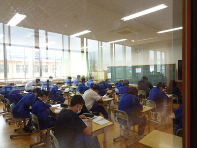 また、この日は飯伊市町村教育委員会連絡協議会の研修会の一環として本校の視察が行われ、下伊那市町村で教育委員をしておられる約80名の皆さんも、本校生徒の学びの姿を参観されました。