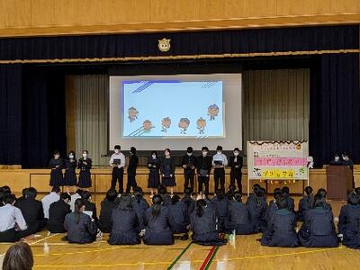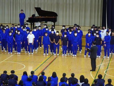 11月5日午後、郡市連合音楽会(主催:公益社団法人下伊那教育会)に参加する3年生の激励会が体育館で行われました。