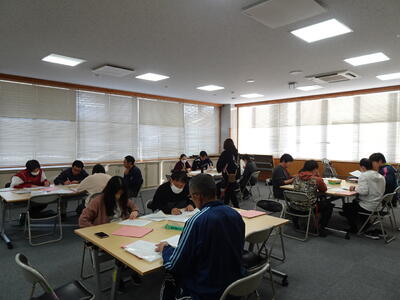 2月13日(金)、1、2年生は本年度最後の定期試験である、3学期期末テストがありました。1年生も2年生も、テスト範囲が告知されて以後の約1ヶ月、めいめい工夫をして学習を積み重ねてきました。