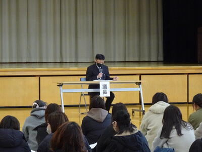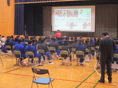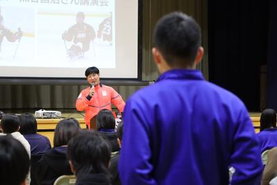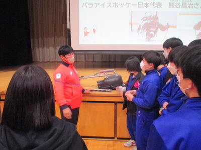2月6日(金)午後、3年生のキャリア教育講演会が行われました。講師は、高森町在住、3年生生徒の保護者でもある、パラリンピックアイスホッケー日本代表選手で、チームの主将も務める熊谷昌治さんでした。