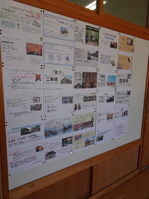 いま、2年生の教室前廊下の壁面には、修学旅行の学習係の生徒がまとめた、「先生方からのおすすめスポット紹介ポスター」が掲示されています。
