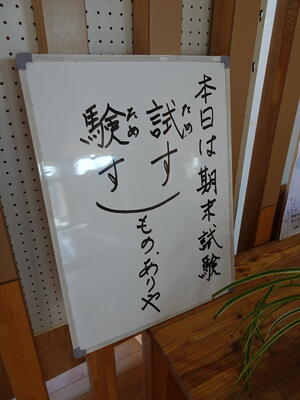 「試験」ということばは、「試(ため)す」「験(ため)す」という字が2つ連なっている熟語です。今日は、それぞれの生徒が、これまで工夫して努力を積み重ねてきたことで培ってきた力=「試す」あるいは「験す」ための実力、問題と向き合いことで発揮するための、大切な自己評価の場でした。