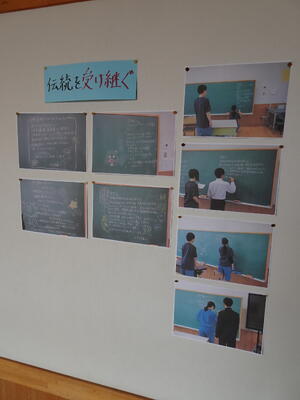 また、3年生の学級長会のメンバーは出発前日の夕方、1年生と2年生の教室の黒板に、「学校を頼む!」のメッセージを残してくれていました。先輩と後輩の温かな応答の関係、これこそ高森中学校の生徒文化です。