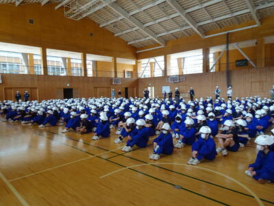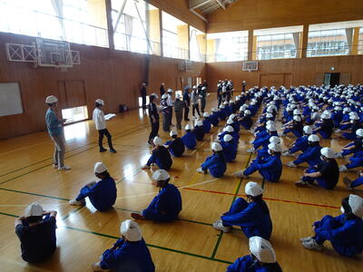 全生徒が放送を静粛な態度で聴き、体育館への避難と集合も静かに緊張感をもって行うことができました。