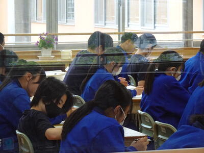 今回は、マークシート方式での調査だったため、開始前の混乱は一切なく、順調に調査が実施できました。調査に参加した全生徒が、最後まであきらめることなく調査問題に向き合い、自分の力を出し切ることができました。